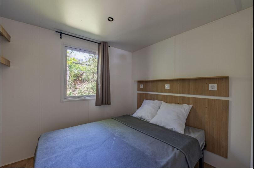 Coin nuit : une chambre avec 1 lit double (140×190), une chambre avec 2 lits simples (80×190) côte à côte, oreillers et couvertures fournis.