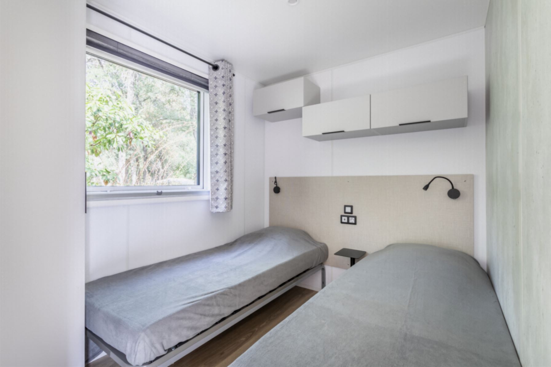 Coin nuit : une chambre avec 1 lit double (160X190), deux chambres avec 2 lits simples (80X190) côte à côte, oreillers et couettes fournis.
